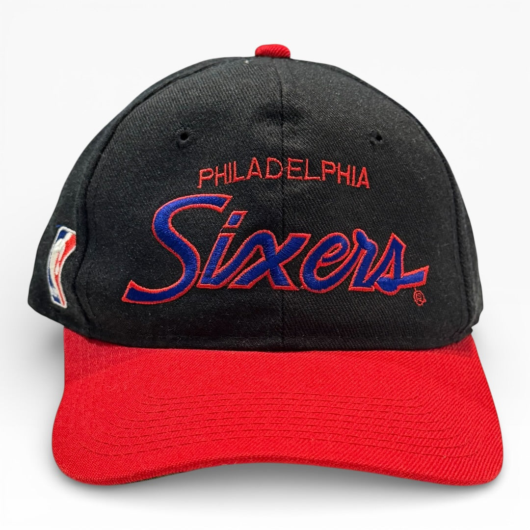 Vintage Philadelphia 76ers NBA cap in black & red colorway.